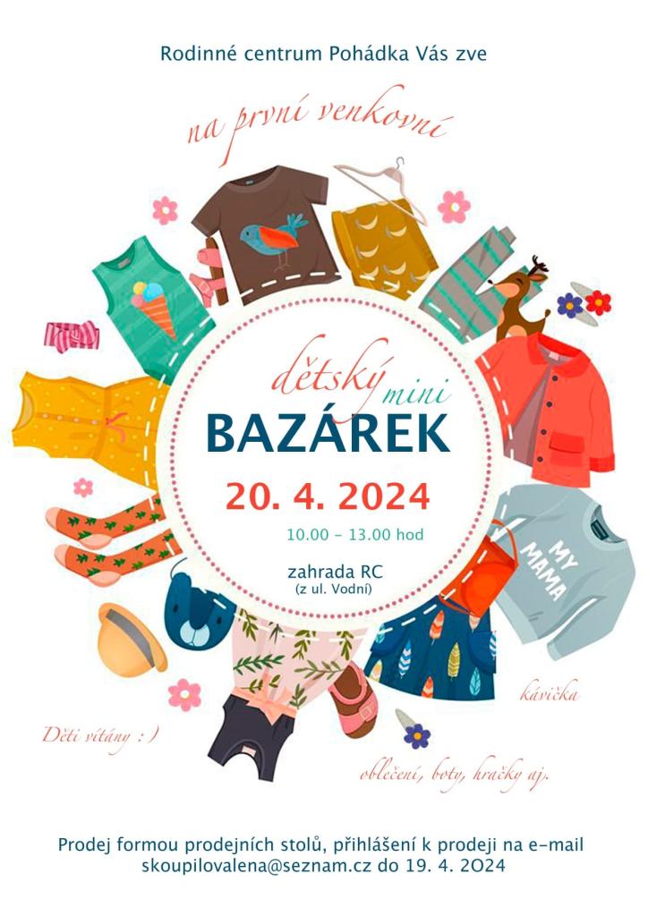 RC Pohádka Vás zve na dětský mini bazárek 20.4.2024 10:00 - 13:00 hod. ve vnitřních prostorách RC