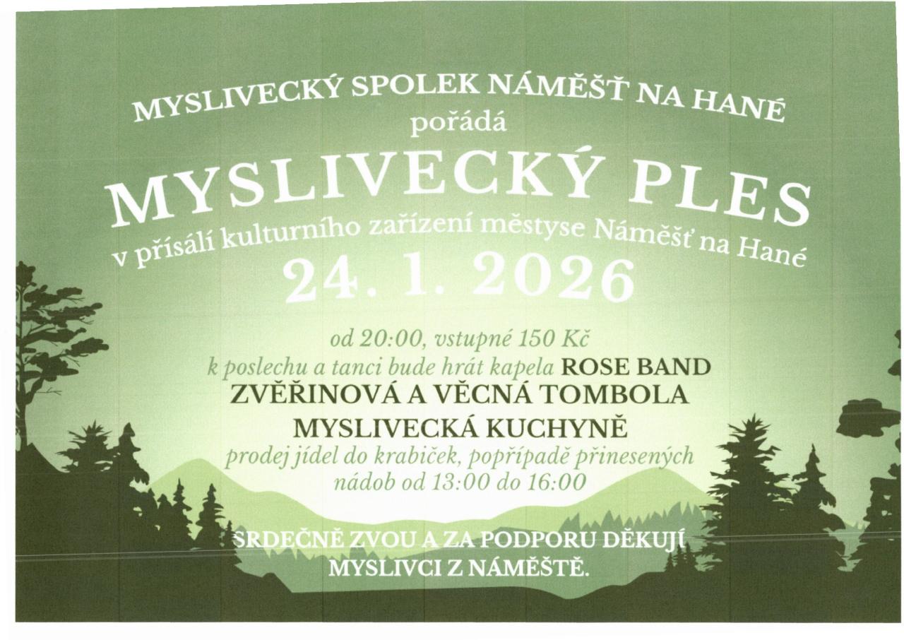 MYSLIVECKÝ PLES 24.1.2026 NÁMĚŠŤ NA HANÉ