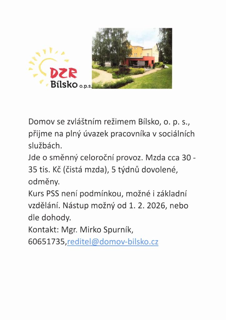 Nabídka zaměstnání Bílsko - Domov se zvláštním režimem