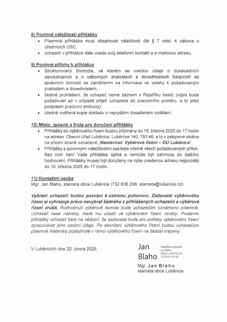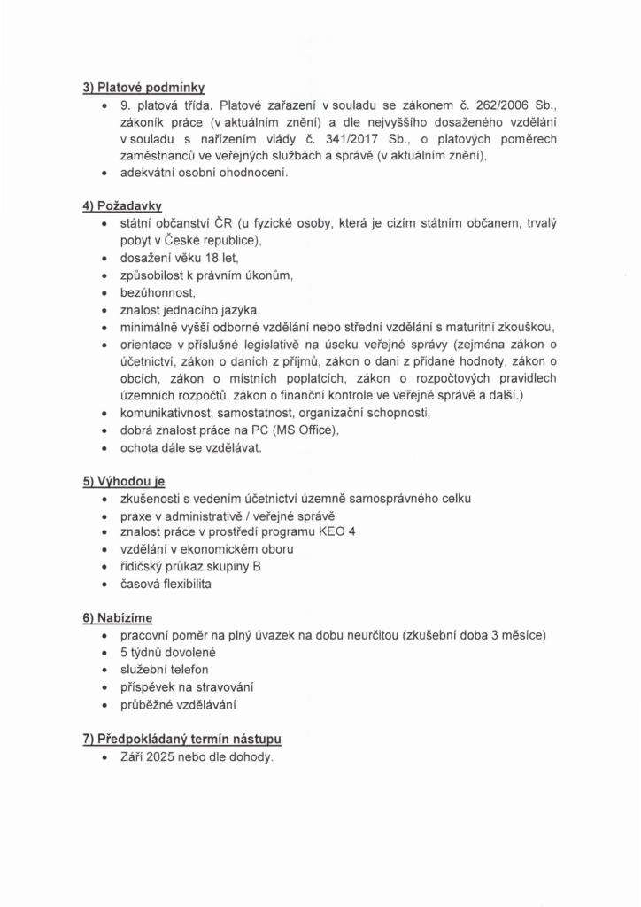Výběrové řízení na obsazení pracovní pozice účetní a referentka obecního úřadu
