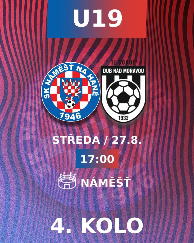 Spolek SK Náměšť na Hané vás zve ve středu 27.8. od 17 hod. na zápas dorosteneckého družstva SK proti TJ Sokol Dub nad Moravou.