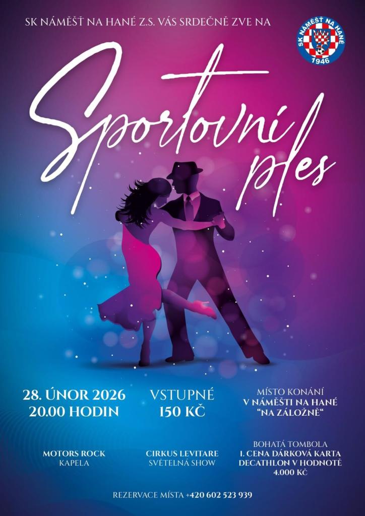Spolek SK Náměšť na Hané vás srdečně zve na sportovní ples, který se koná v sobotu 28. února od 20 hod. na sále kulturního zařízení městyse Náměšť na Hané.