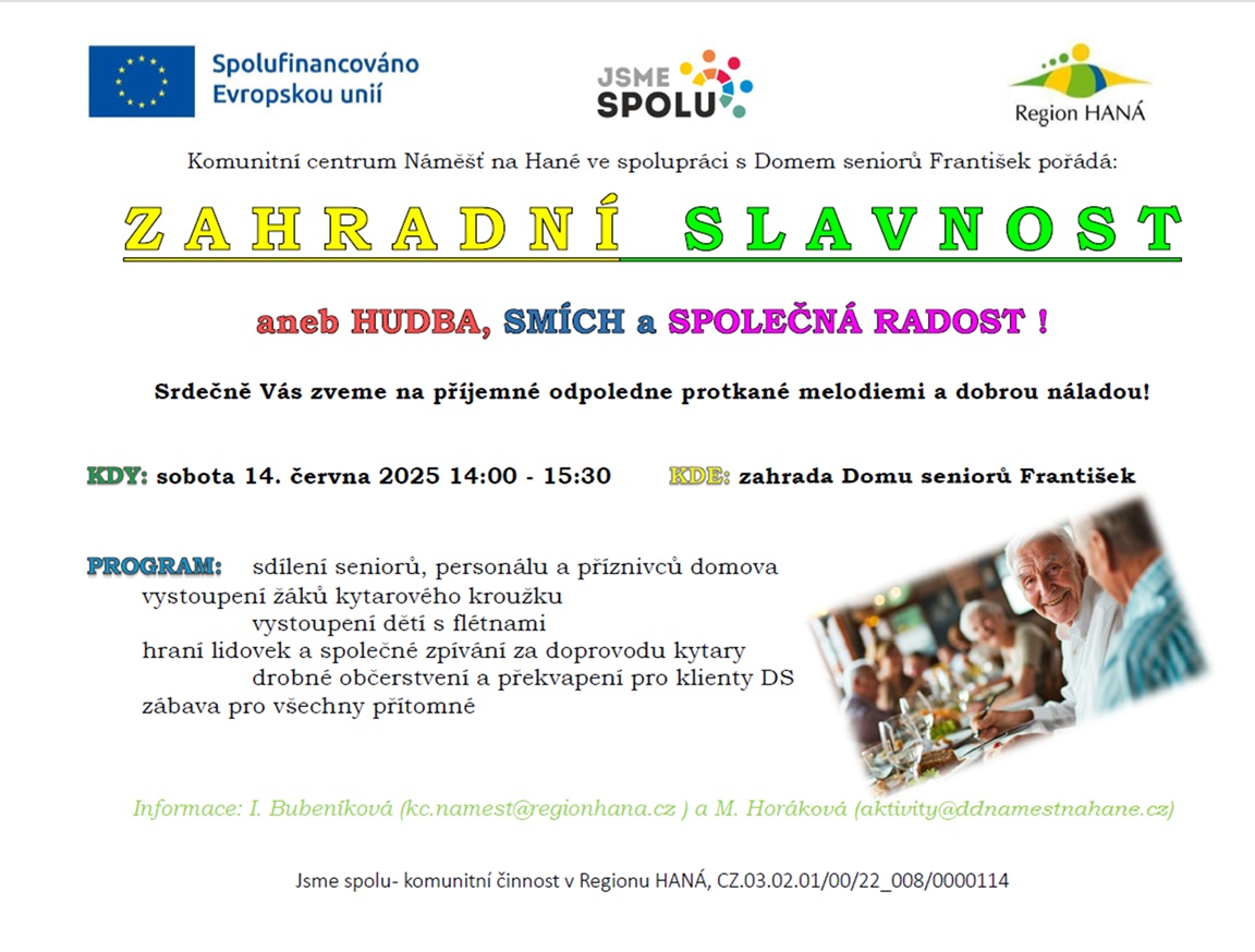Zahradní slavnost 14. června 2025 zahrada Domu seniorů František v Náměšti na Hané.