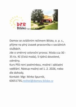 Domov se zvláštním režimem Bílsko, o. p. s., přijme na plný úvazek pracovníka v sociálních službách 👥.